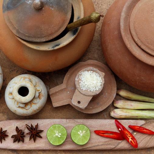 Exhibited in the restaurant are permanent collections of Khmer pottery and ceramics from the past decades and centuries, a fine showcase of Cambodia's heritage told through the stories of unique earthenware, from terracotta to celadon glazed pieces.